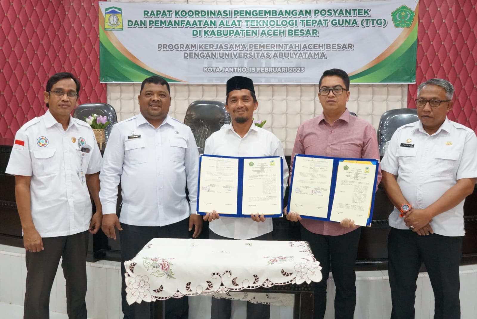 oketrend.id, Kota Jantho – Pemerintah Aceh Besar melakukan penandatanganan Kerjasama Pengembangan TTG (Teknologi Tepat Guna) dengan Kampus Abulyatama Aceh di Aula DPMG di Kota Jantho, 15 Februari 2023.