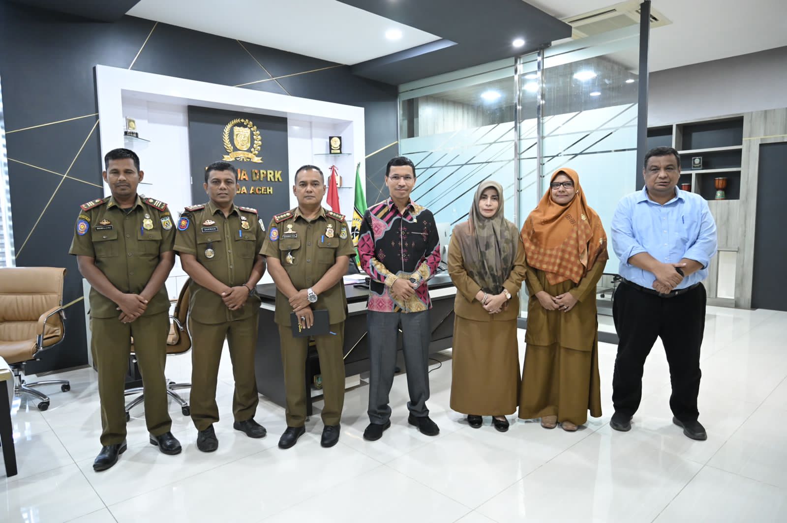 Ketua DPRK Banda Aceh Farid Nyak Umar foto bersama dengan Kepala DP3AP2KB dan Dinas Satuan Polisi Pamong Praja-Wilayatul Hisbah (Satpol PP-WH) Kota Banda Aceh, di ruang kerja Ketua DPRK, Selasa (04/04/2023).FOTO/ HUMAS DPRK BANDA ACEH