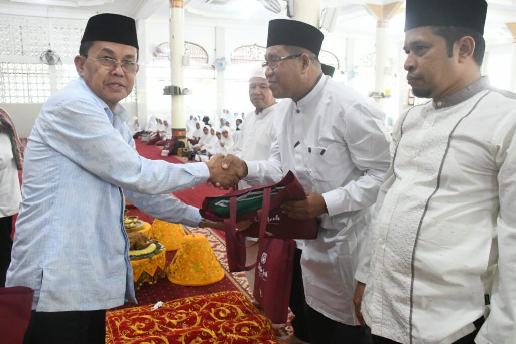Banda Aceh – Pemerintah Kota Banda Aceh, Sabtu (20/5/2023), melakukan peusijuk atau tepung tawar Jamaah Calon Haji (JCH) asal Banda Aceh, sekaligus dilepas secara resmi memasuki pemondokan di Asrama haji untuk selanjutnya berangkat menuju ke tanah suci.