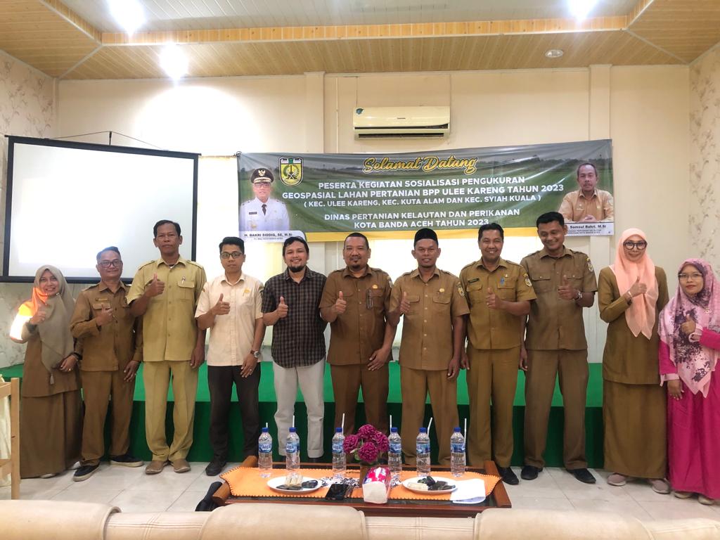 Banda Aceh – Dinas Pangan, Pertanian, Kelautan dan Perikanan Kota Banda Aceh melakukan sosialisasi pengukuran geospasial lahan pertanian Balai Penyuluhan pertanian (BPP) Meuraxa, Ulee Kareng, dan Lueng Bata di Aula DPPKP, Selasa (13/06/2023).