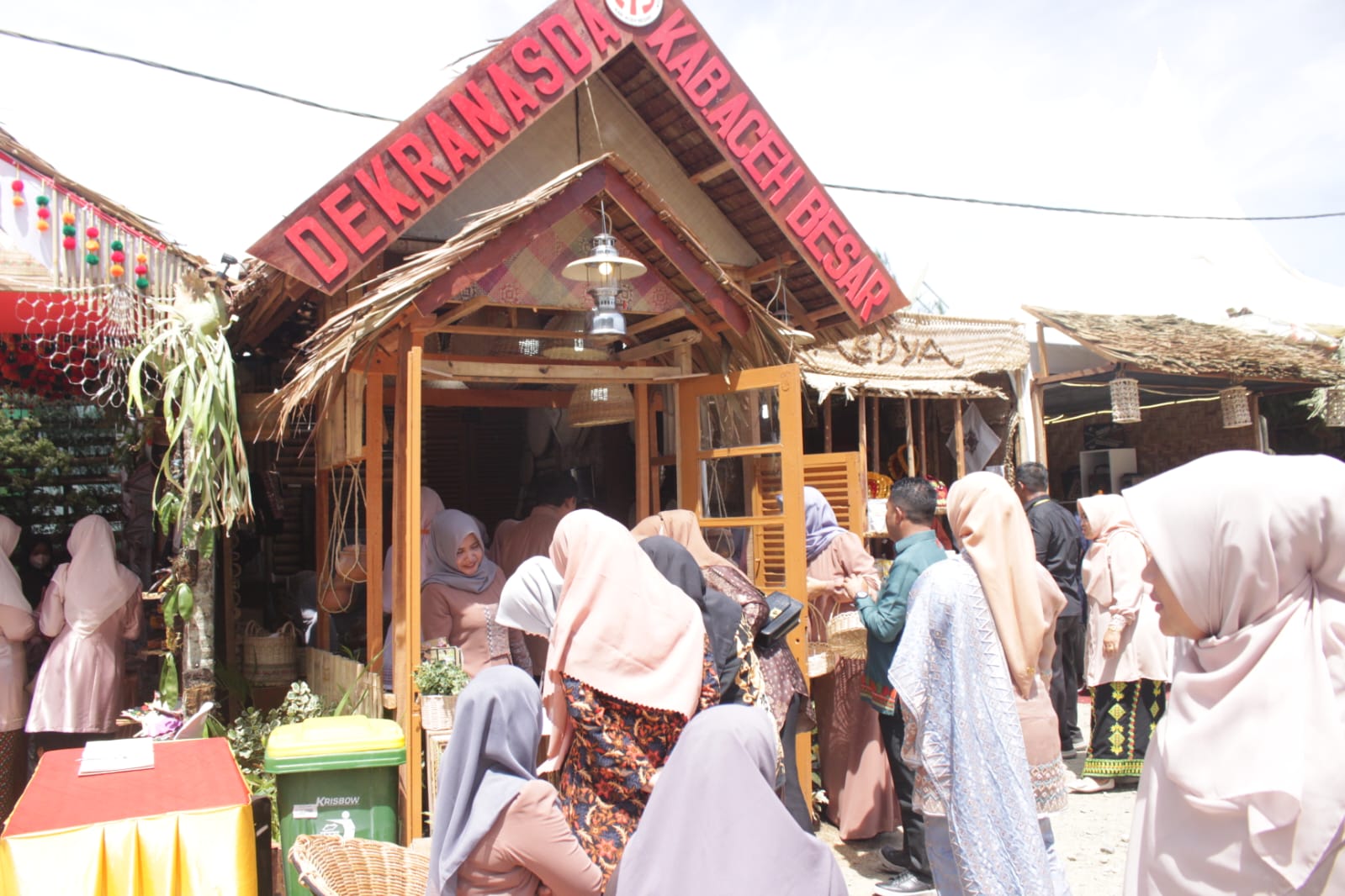 PADATI STAND ABES – Para pengunjung sedang memasuki stand Aceh Besar pada event pameran Kabupaten/Kota Se-Aceh Ruang Terbuka Hijau (RTH) Taman Pala Indah, Tapaktuan, Kabupaten Aceh Selatan, Kamis (15/6/2023).FOTO / MC ACEH BESAR