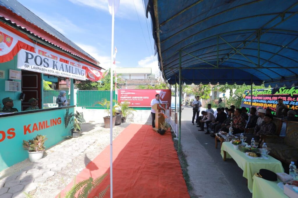 Pj Wali Kota Banda Aceh Bakri Siddiq turut hadir menyaksikan secara langsung penyerahan piala yang diserahkan oleh Wakapolresta Banda Aceh kepada Pj Keuchik Gampong Lampaseh Kota Abdulhadi di Poskamling Gampong Lampaseh Kota, Kamis (15/06/2023).