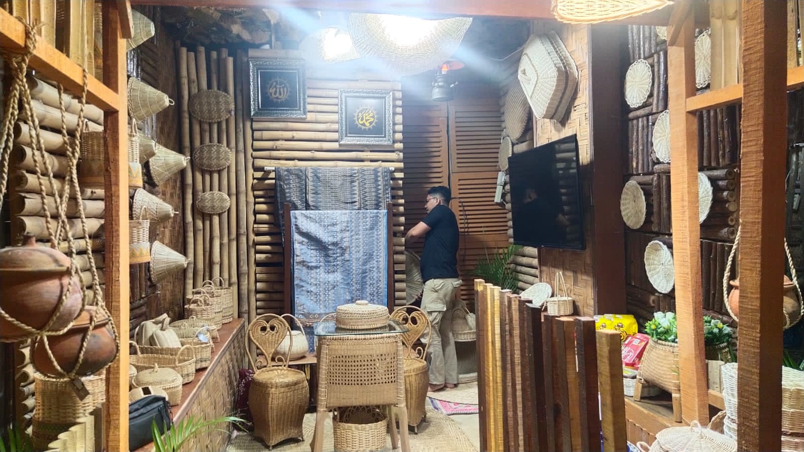 Stand Dekranasda Aceh Besar sudah rampung 100% menjelang pembukaan Rakerda Dekranasda dan Pameran Unggulan Kabupaten/Kota Se Aceh Tahun 2023 di Ruang Terbuka Taman Pala Hijau (RTPH), Tapaktuan, Kabupaten Aceh Selatan, Rabu (14/6/2023) malam..FOTO/ MC ACEH BESAR