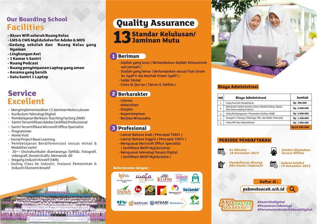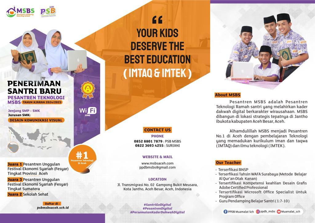 oketrend.id, Kota Jantho – Pesantren Teknologi MSBS merupakan pesantren tekhnologi ramah santri yang bertekad melahirkan generasi muda sebagai kader dakwah digital berkarakter wirausaha membuka pendaftaran santri baru.