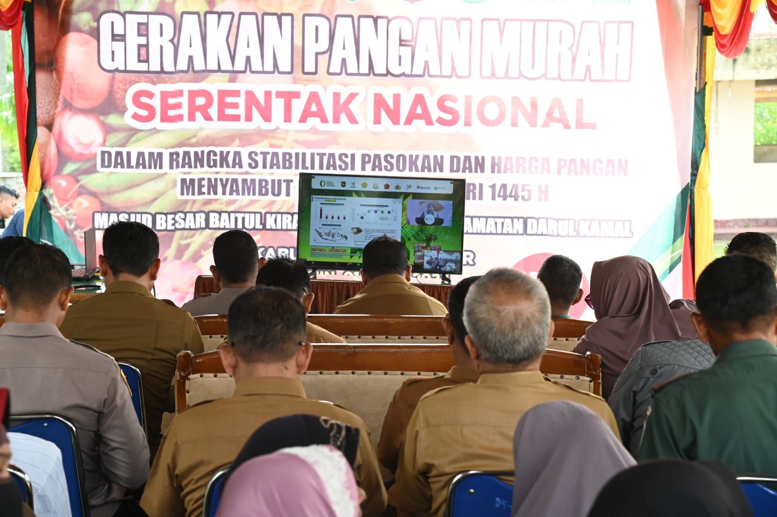Ditempat yang sama Sekretaris Daerah Kabupaten Aceh Besar Drs Sulaimi MSi, mewakili Penjabat (Pj) Bupati Aceh Besar Muhammad Iswanto SSTP MM, mengikuti meeting zoom gerakan pangan serentak nasional yang digelar oleh Badan Pangan Nasional serta melibatkan 514 kabupaten/kota di seluruh Indonesia.