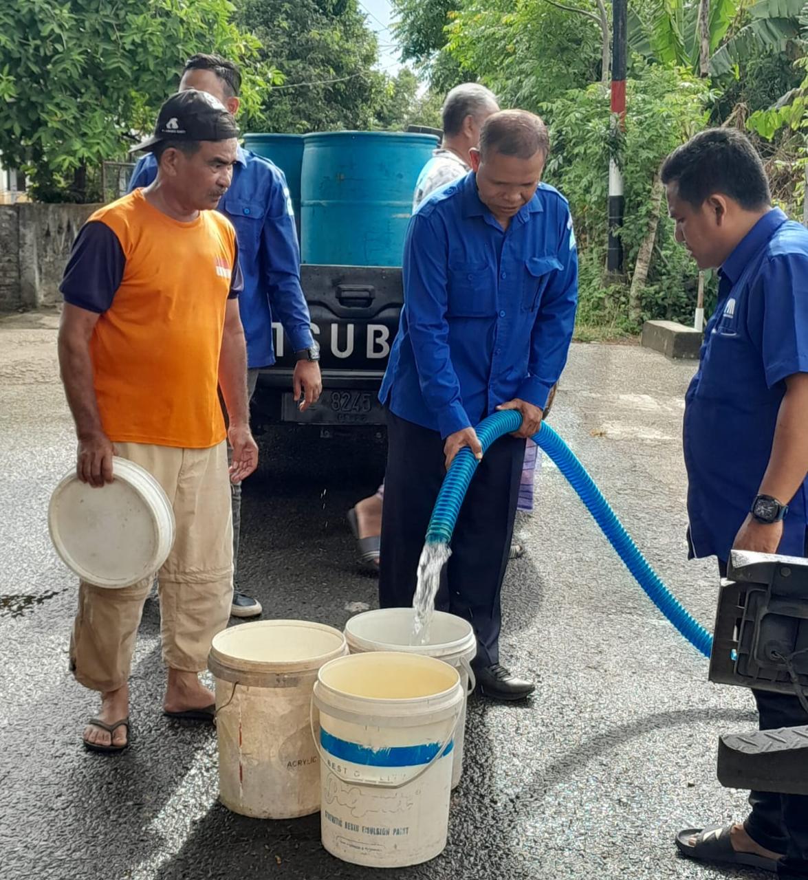 Direktur Utama PDAM Tirta Mountala Kabupaten Aceh Besar Ir Sulaiman MSi sedang menyuplai air bersih kepada warga Gampong Mon Ikeun Kecamatan Lhoknga, Aceh Besar, Senin (13/05/2024) FOTO/ DOK PDAM TIRTA MOUNTALA
